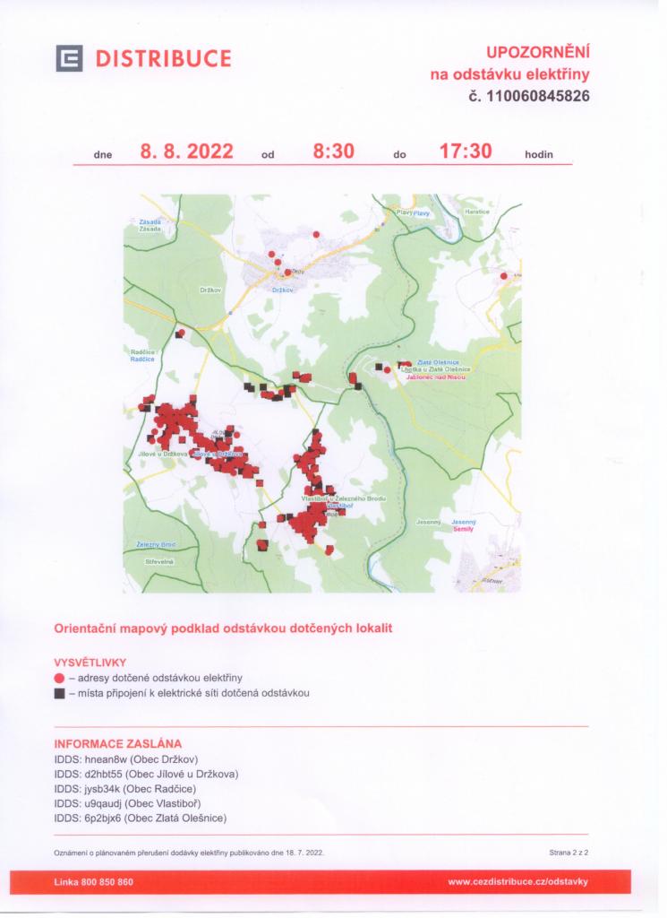 odstávka elektřiny 8.8.2022