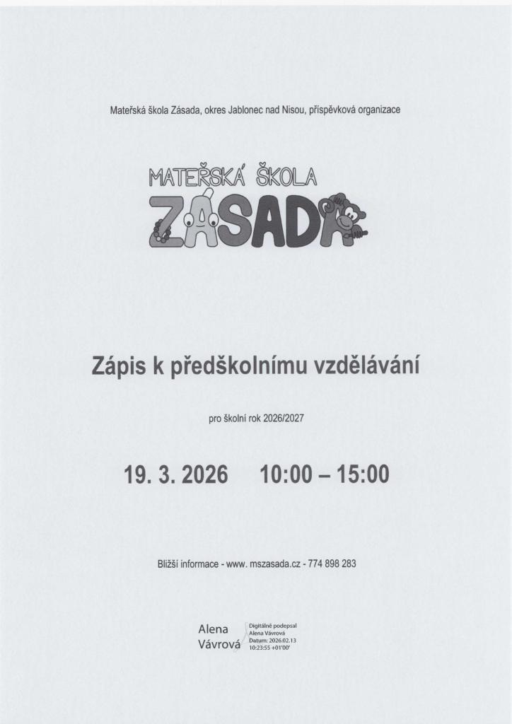 MŚ Zásada Zápis k předškolnímu vzdělávání