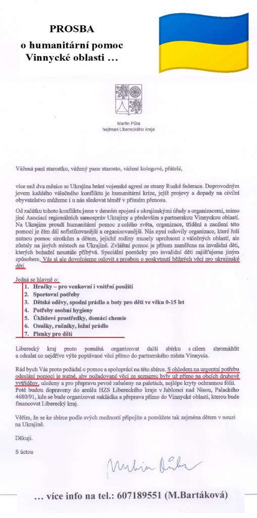 prosba o humanitární pomoc